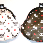 ぱんだ混じりのモノグラムプリントで作ったがま口のお財布です。