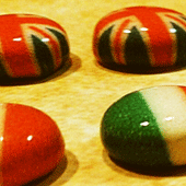 世界の国旗を模したおはじきのようなカラフルでころっとしたスタッドピアスです。